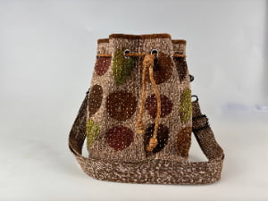Embroidery Natural Dyed Patchwork Bag using traditional handwoven fabric and natural dye techniques, designed for modern fashion collections.